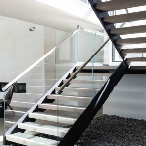 Tempered safety glass in clear, frosted, or custom patterns for modern designs.
